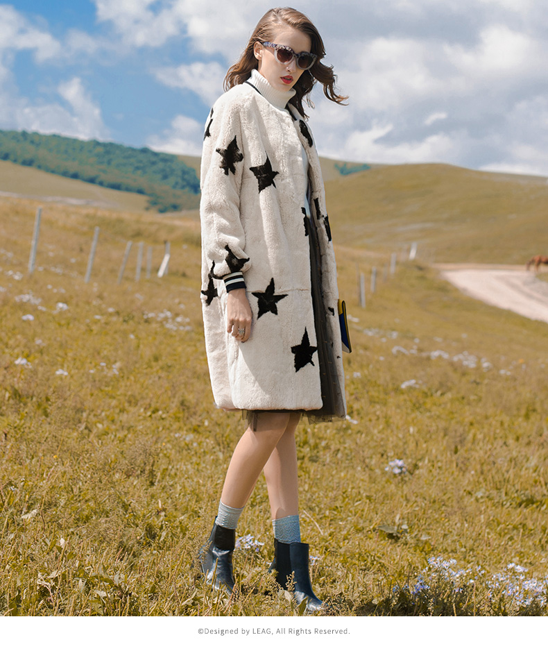 Rex rabbit fur coat with star 1703008